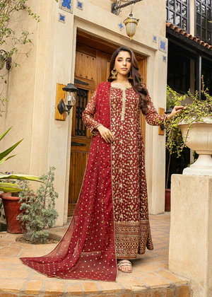 Additional Description: This Swoon Worthy Chiffon Kali Long Length Frock With Hem Border Consisting Of (Dabka) Laces Adding A Conventional Touch To Ensemble. The Intricate Zari Work Scatterd All Over The Fabric Adding A Traditional Essence To The Silhouette.